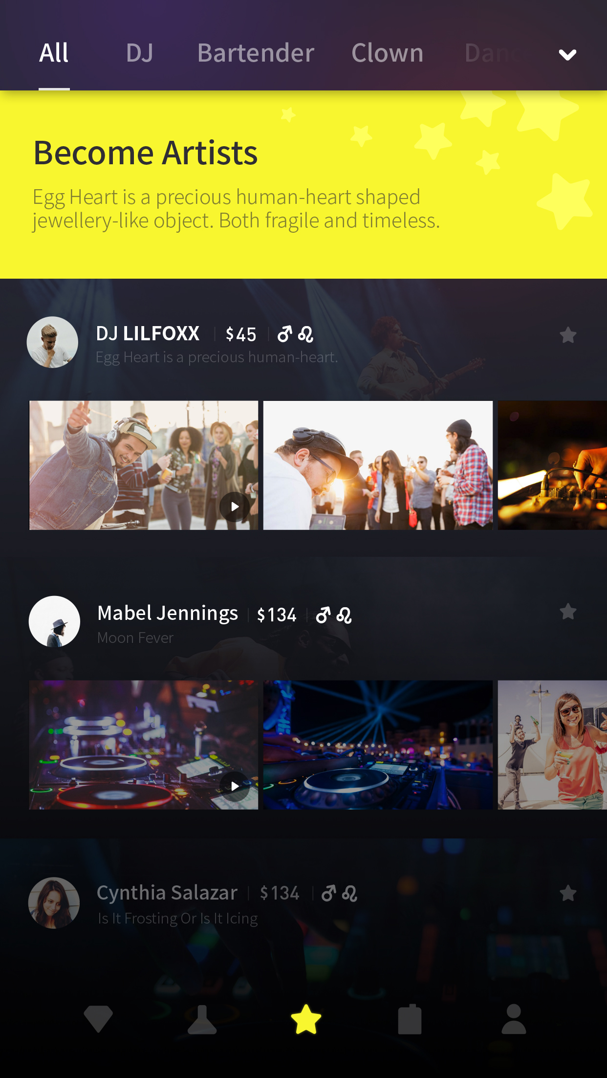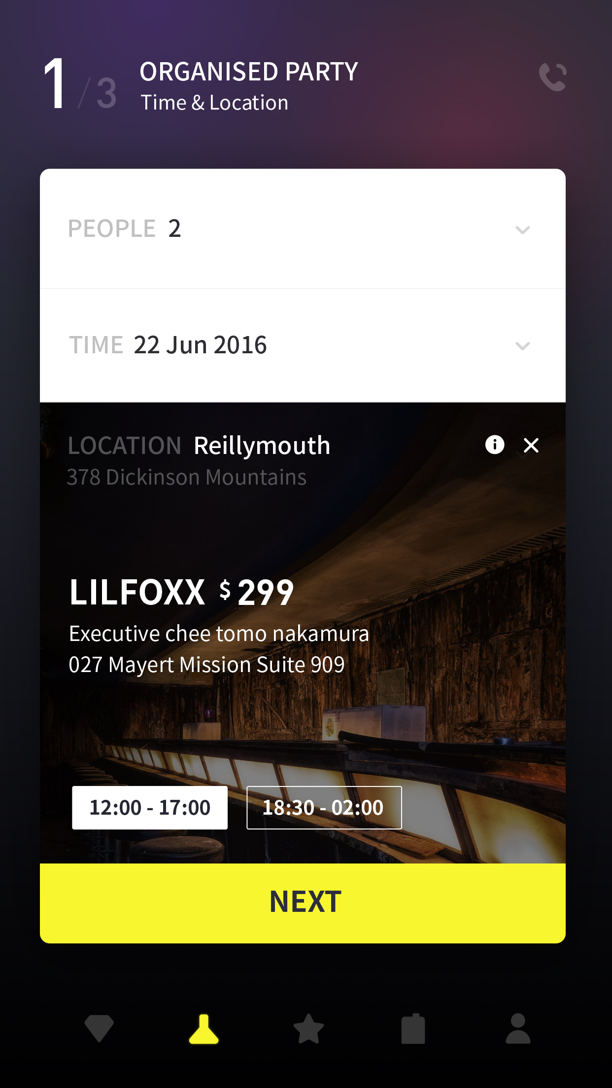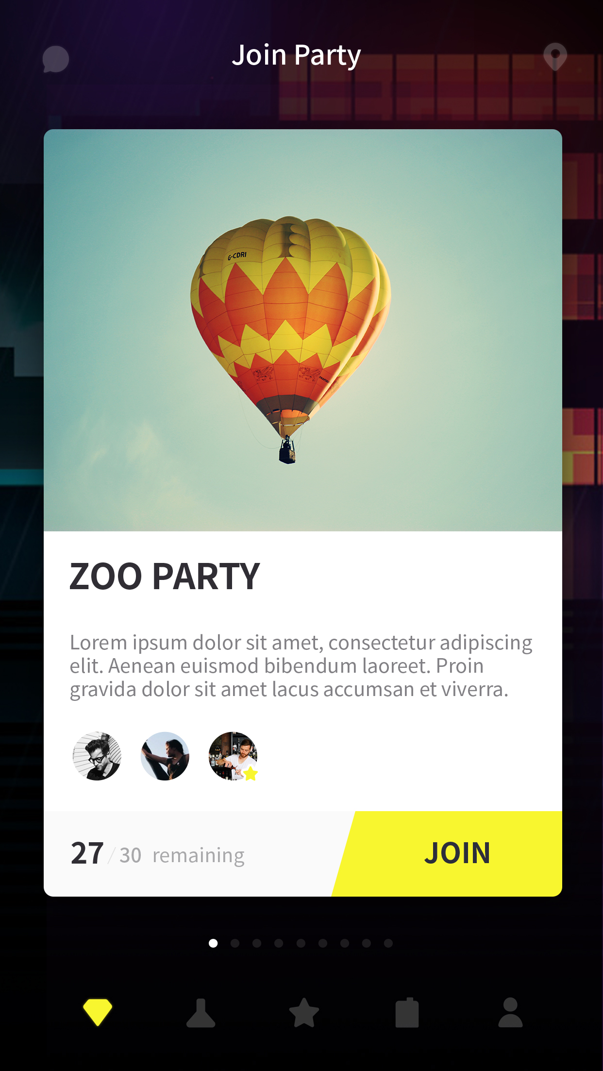 Fluorescent nightclub style design - The age of party user is mainly 15 to 25, and the location is bar, club, KTV and other similar entertainment places. Such fluorescent efficiency is inherited by the overall design of app. Lemon yellow reflect the vitality and youth, which is very instructive as a clicking entrance.